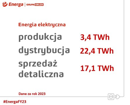 44 proc. mocy zainstalowanej w aktywach wytwórczych Energi pochodzi z OZE. Wpisuje się to w strategię energetyczną Grupy ORLEN, ukierunkowaną ściśle na nisko i zeroemisyjne źródła energii. Silnym i stabilnym sektorem działalności Energi jest też dystrybucja. Sieć dystrybucyjna składa się z linii energetycznych o łącznej długości 197 tys. km i obejmuje swoim zasięgiem ok. 1/4 powierzchni kraju. Przez 12 miesięcy 2023 roku Energa dostarczyła do odbiorców 22,4 TWh energii elektrycznej. Udział OZE w produkcji własnej to 46 procent. Niemal połowa sprzedawanej klientom energii pochodzi z odnawialnych źródeł: wiatru, słońca, wody, biomasy i biogazu.