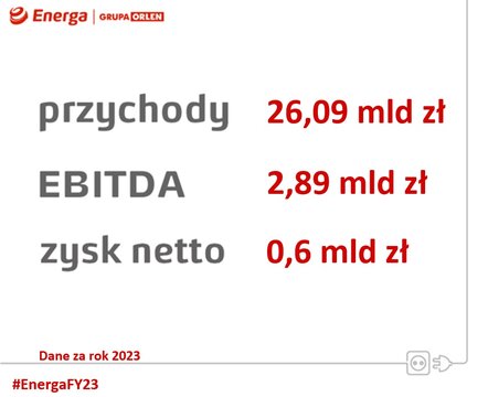 Po trzech latach od przejęcia kapitałowego przez ORLEN SA, Grupa Energa osiągnęła kolejny raz solidne wyniki finansowe. Właśnie podsumowano 12 miesięcy ub. roku. Skonsolidowane przychody ze sprzedaży wzrosły r/r o 28% i wyniosły 26,09 mld zł, EBITDA Grupy wyniosła 2,89 mld zł, poprawiając tym samym wynik z 2022 roku o 12%. Zysk netto Grupy w 2023 roku wyniósł 0,6 mld zł w porównaniu do 1 mld zł rok wcześniej.